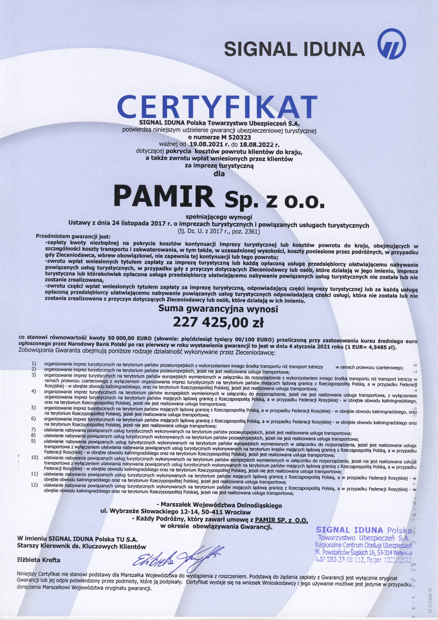 gwarancję ubezpieczeniową turystyczną